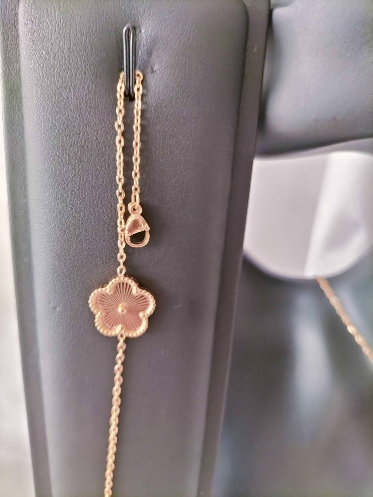 Ensemble élégant composé d’un collier et d’un bracelet ornés d’un délicat motif trèfle. Un bijou raffiné, symbole de chance et d’élégance, parfait pour sublimer toutes vos tenues.